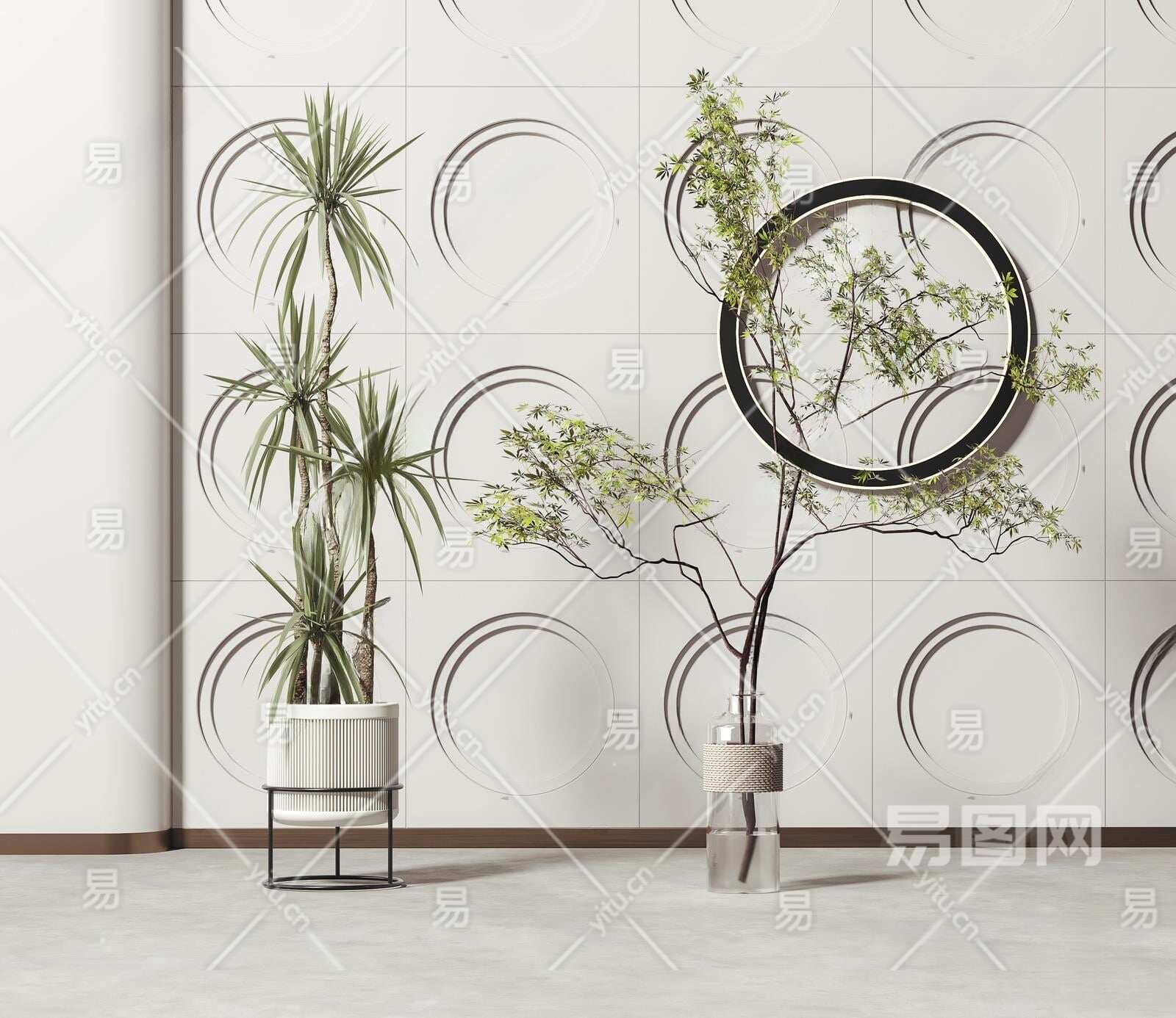 现代植物盆栽组合3D模型下载