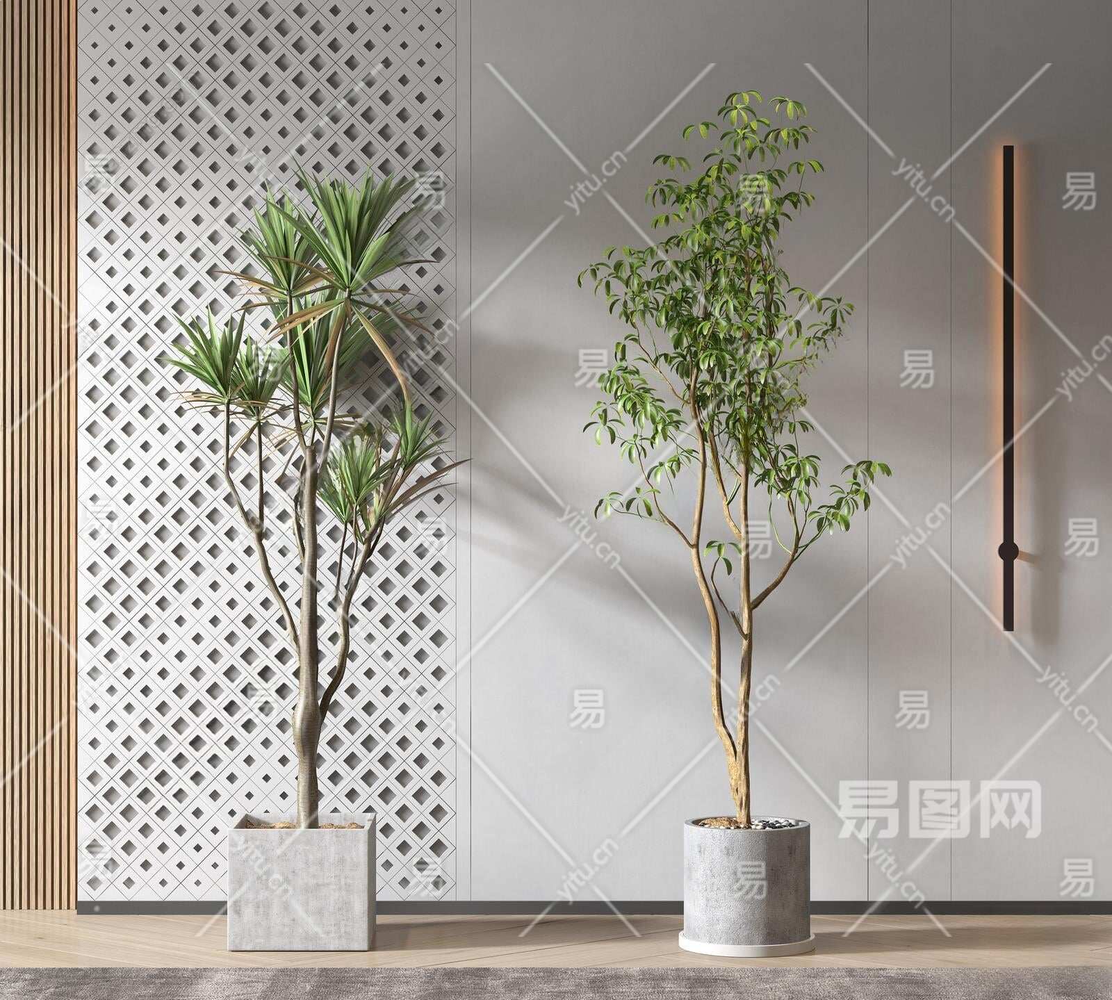 现代盆栽3D模型下载