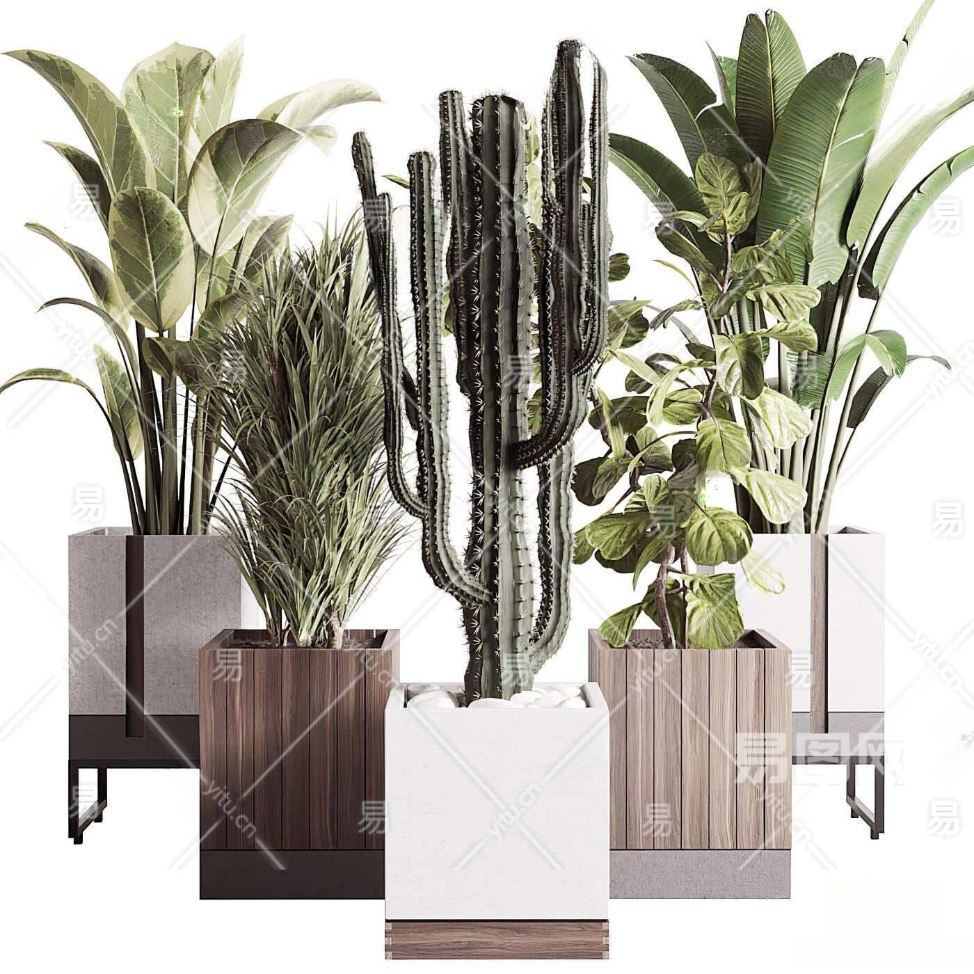 现代盆栽组合3D模型下载