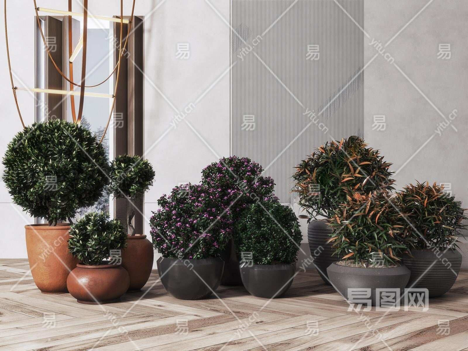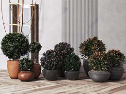 现代盆栽3D模型下载
