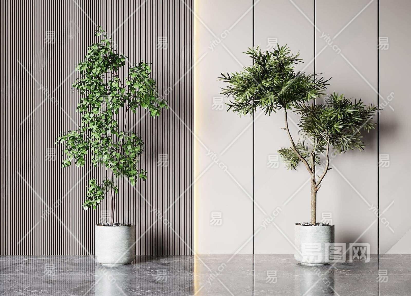 现代绿植盆栽组合3D模型下载