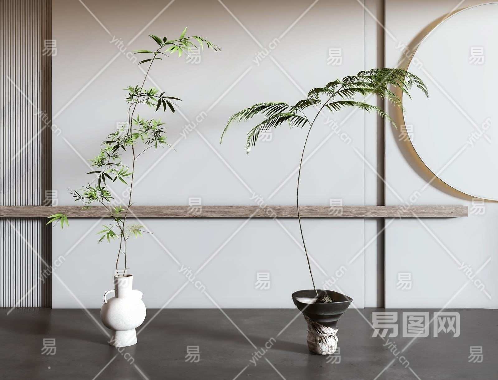 现代植物盆栽组合3D模型下载