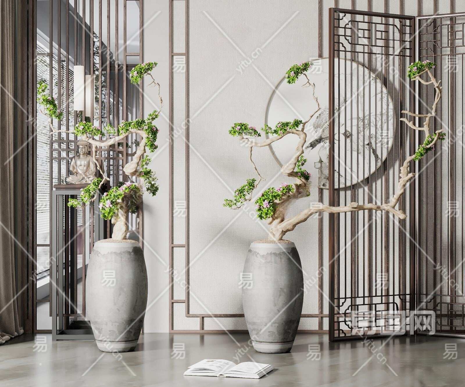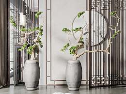 新中式绿植盆栽组合3D模型下载