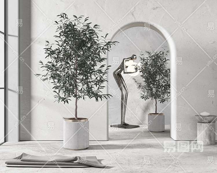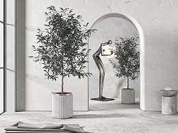 现代盆栽3D模型下载
