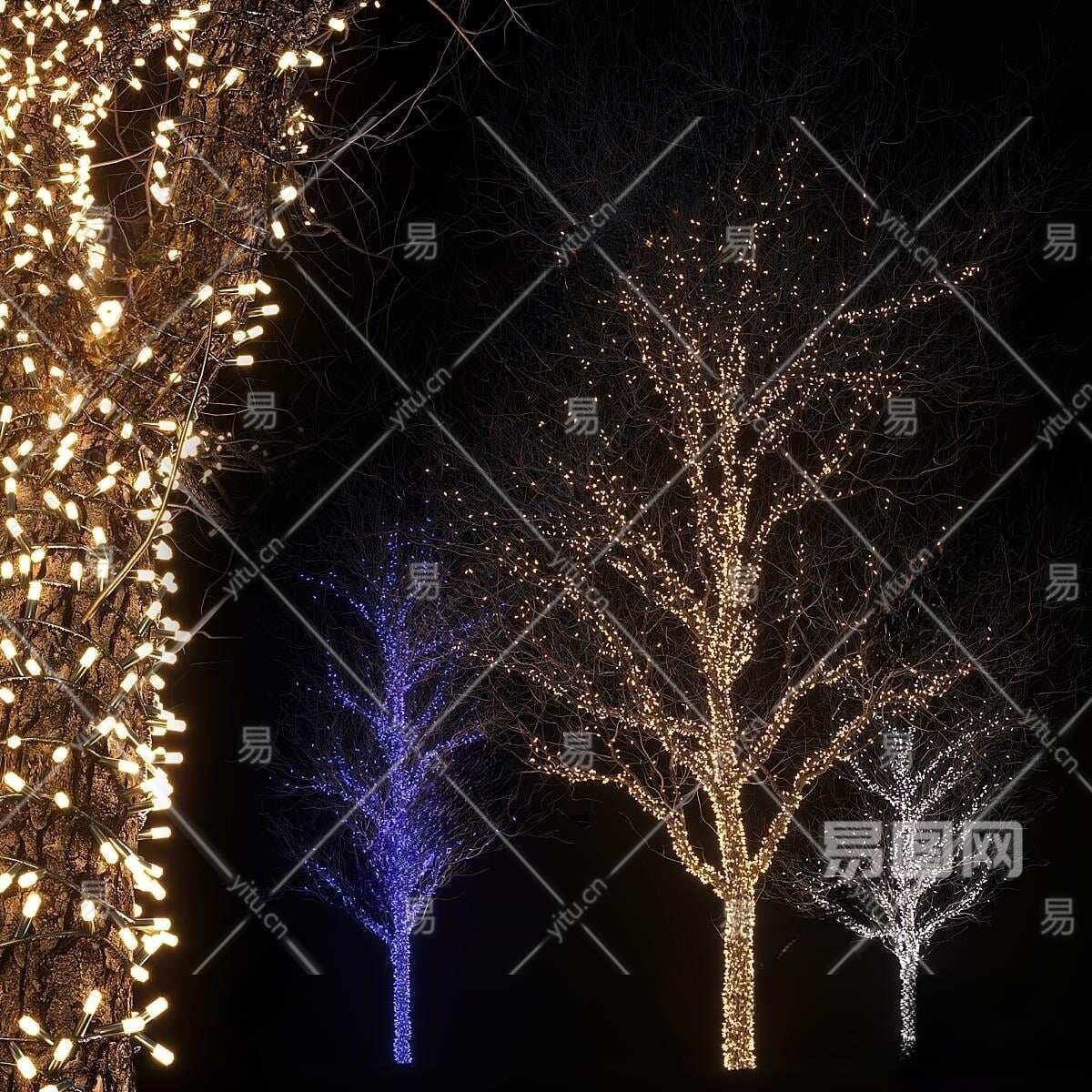夜景枯树3D模型下载
