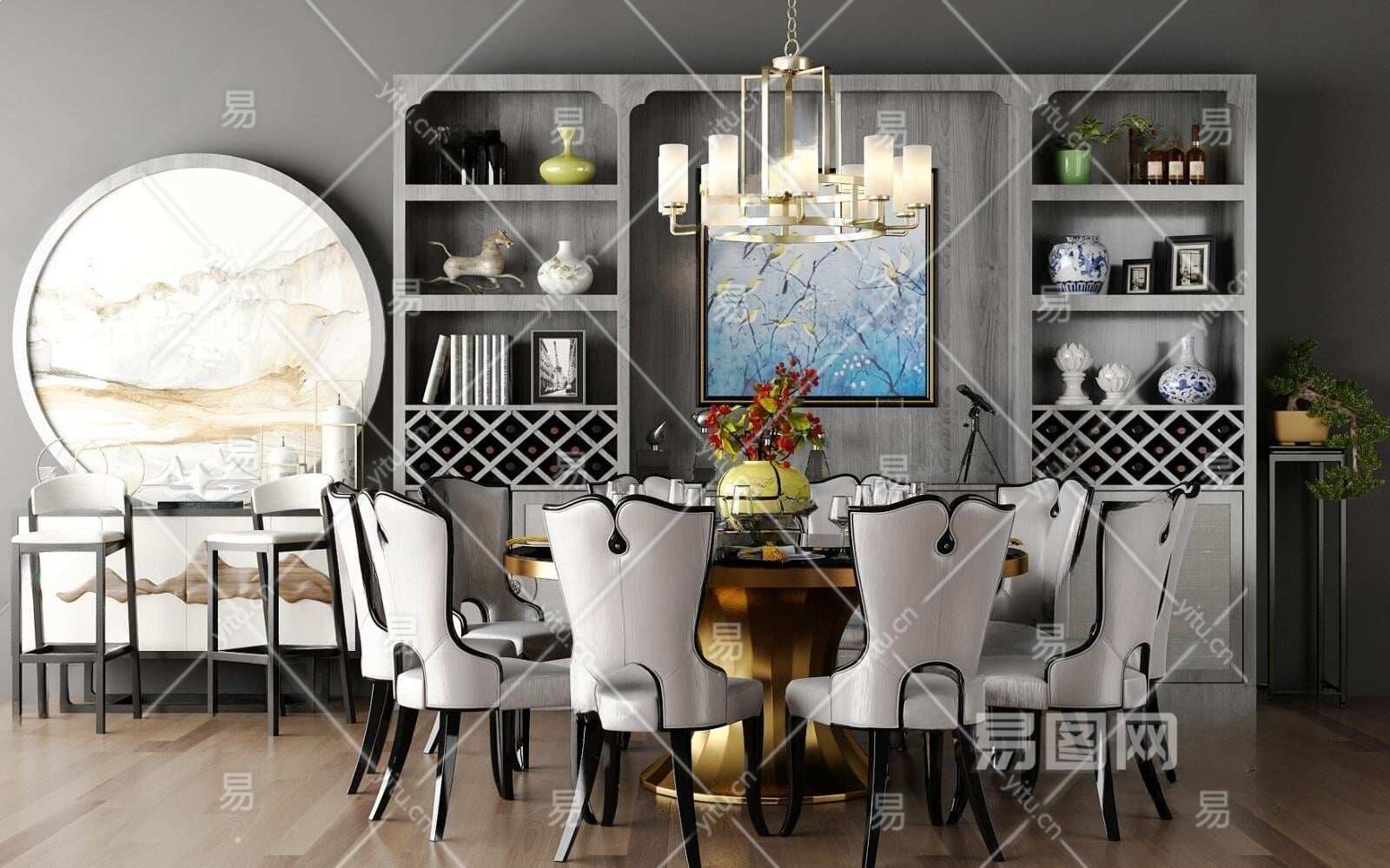 新中式餐桌3D模型下载