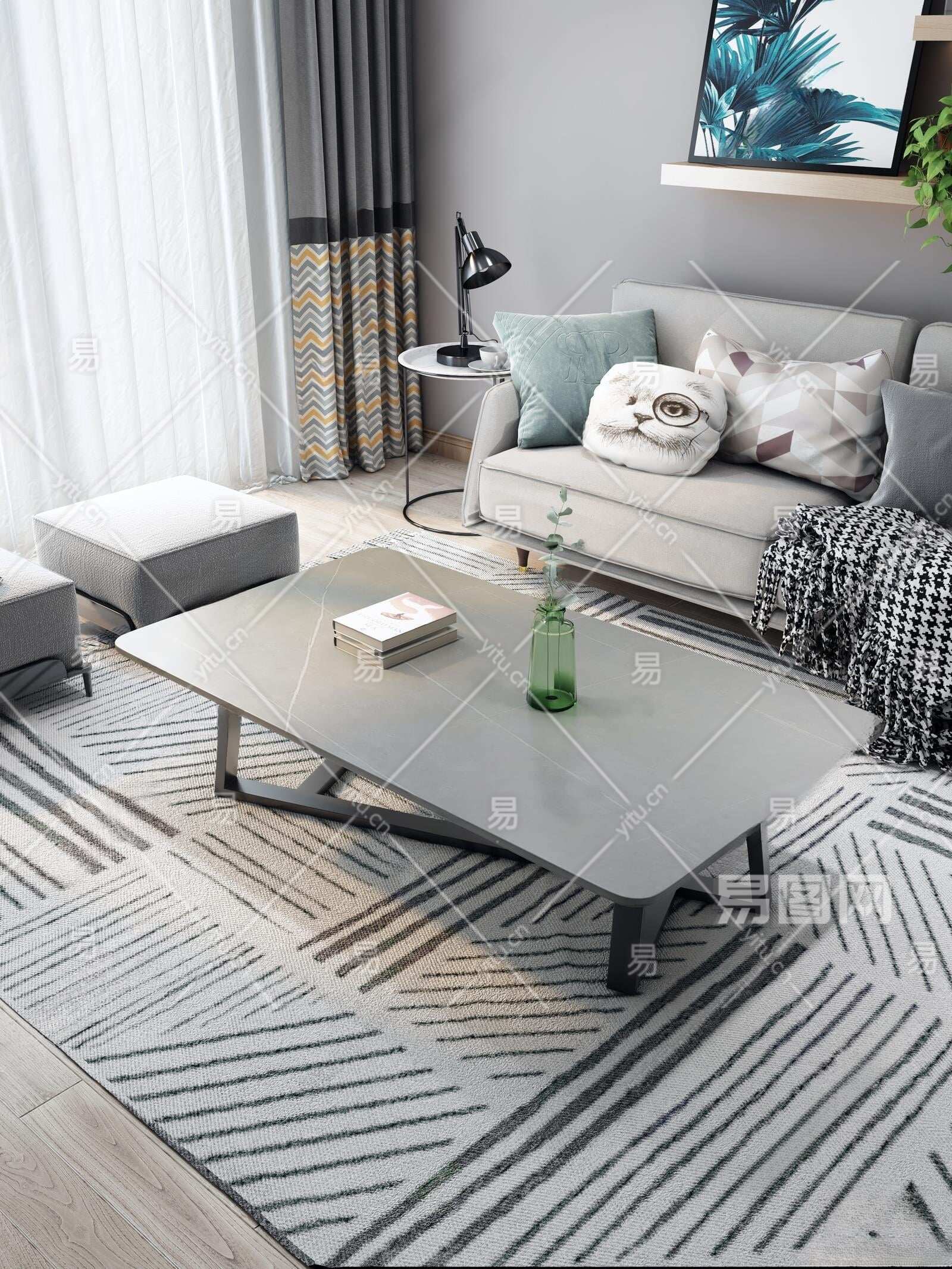 现代茶几3D模型下载