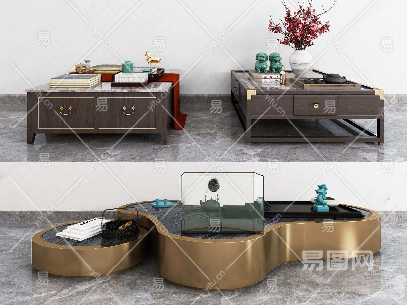 新中式茶几组合3D模型下载
