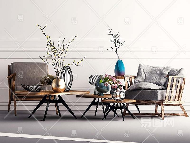 北欧风格椅子茶几组合3D模型下载