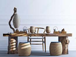中式椅子茶几组合3D模型下载