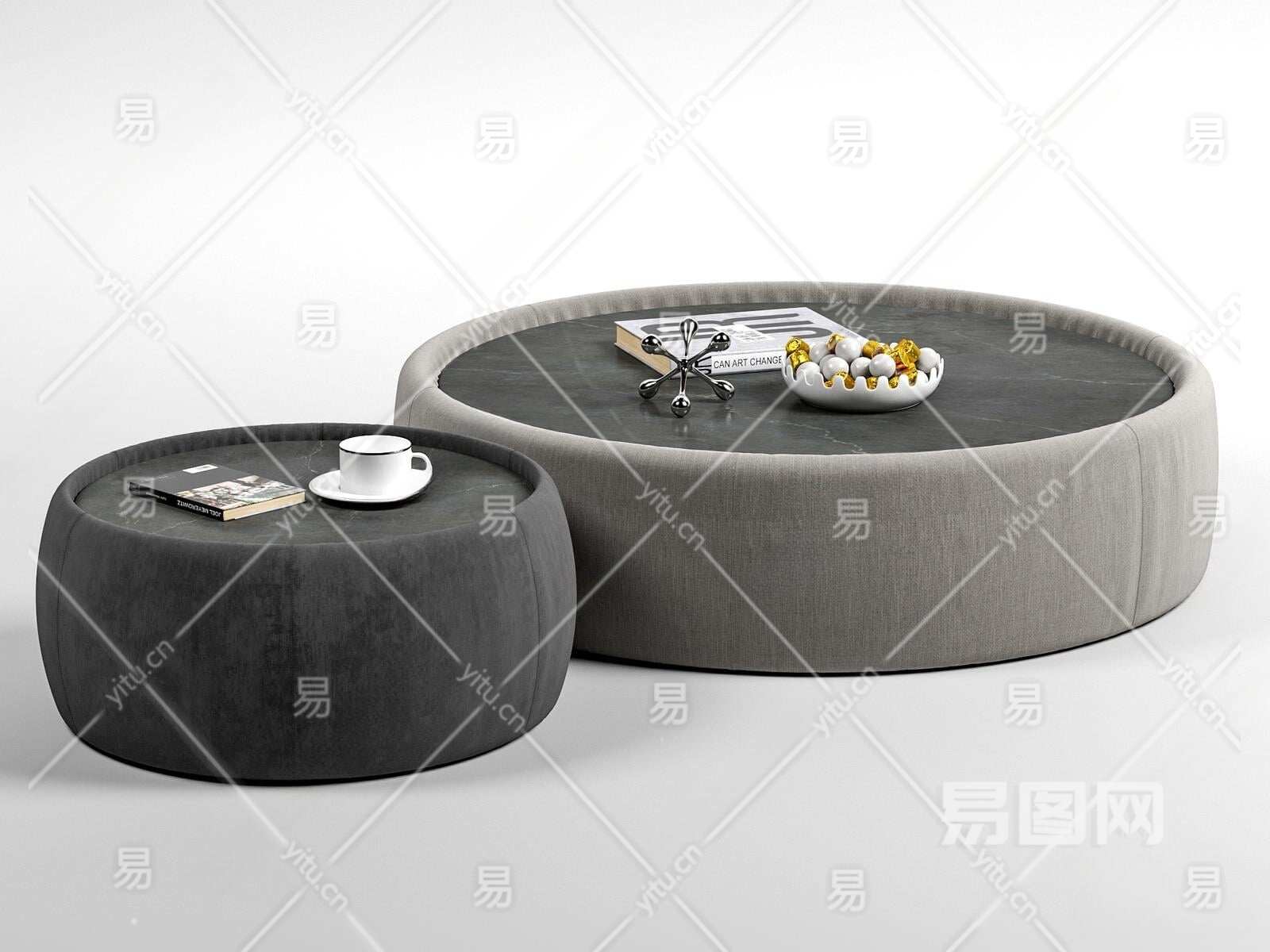 现代石材茶几组合3D模型下载
