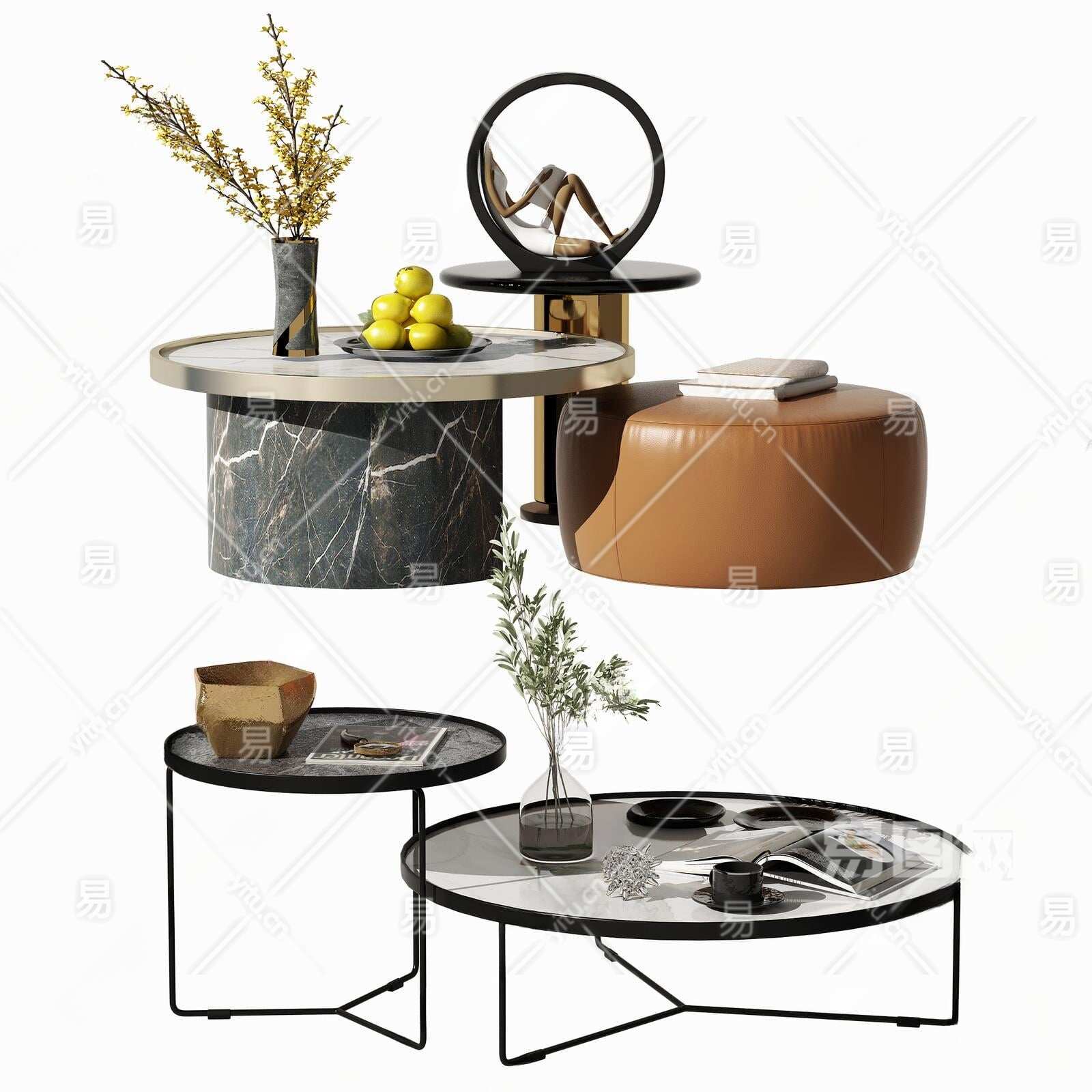 现代茶几3D模型下载
