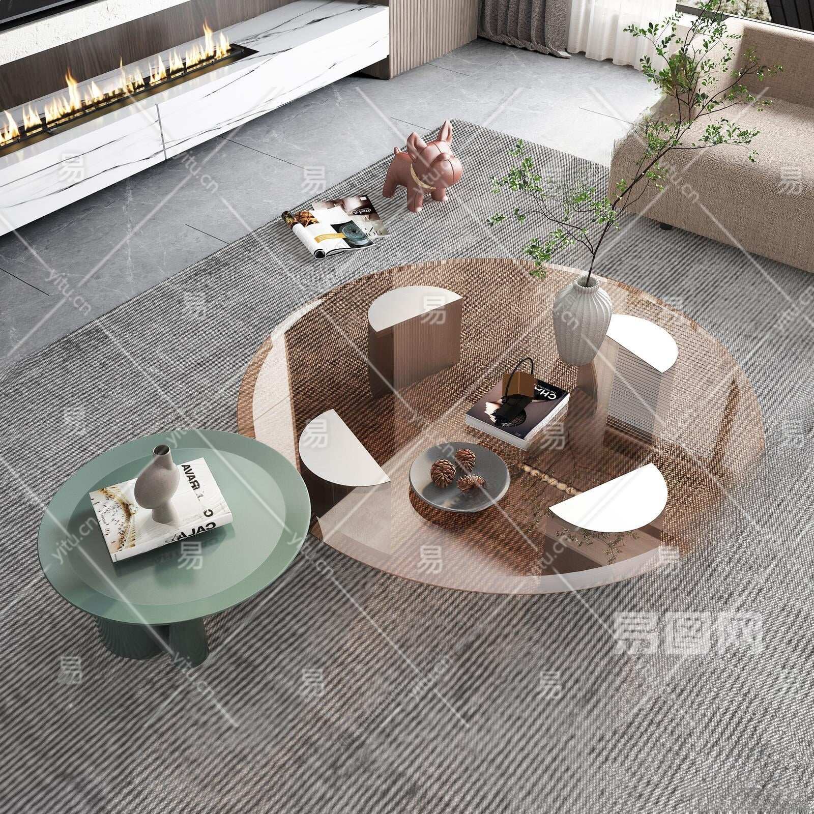 现代玻璃茶几组合3D模型下载