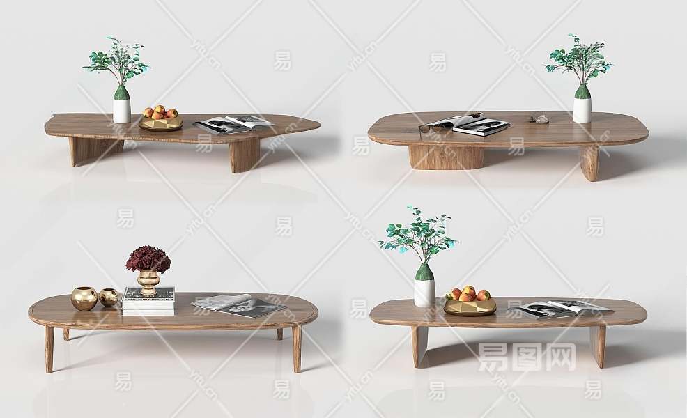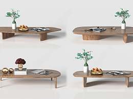 现代实木异形茶几组合3D模型下载