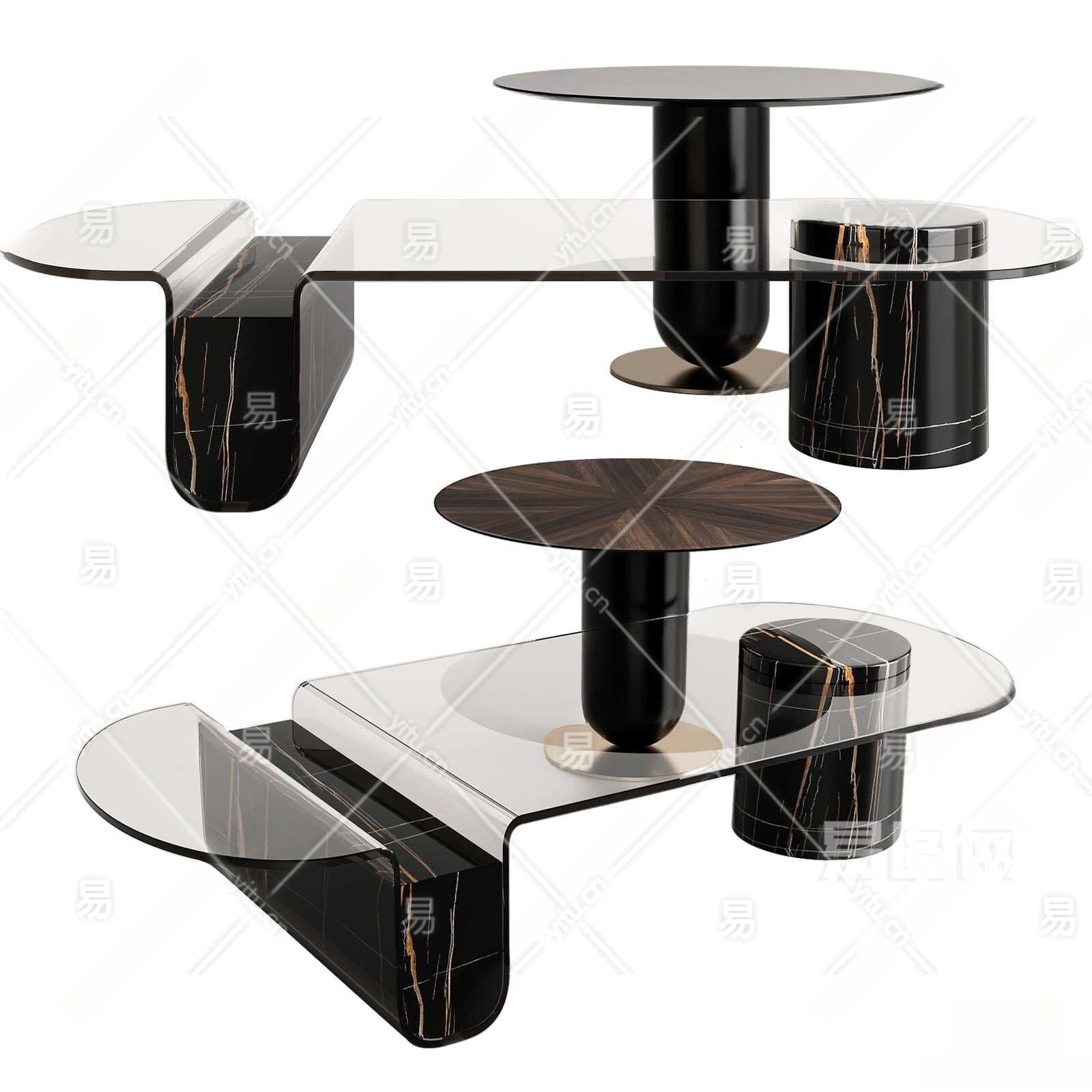 现代玻璃茶几3D模型下载