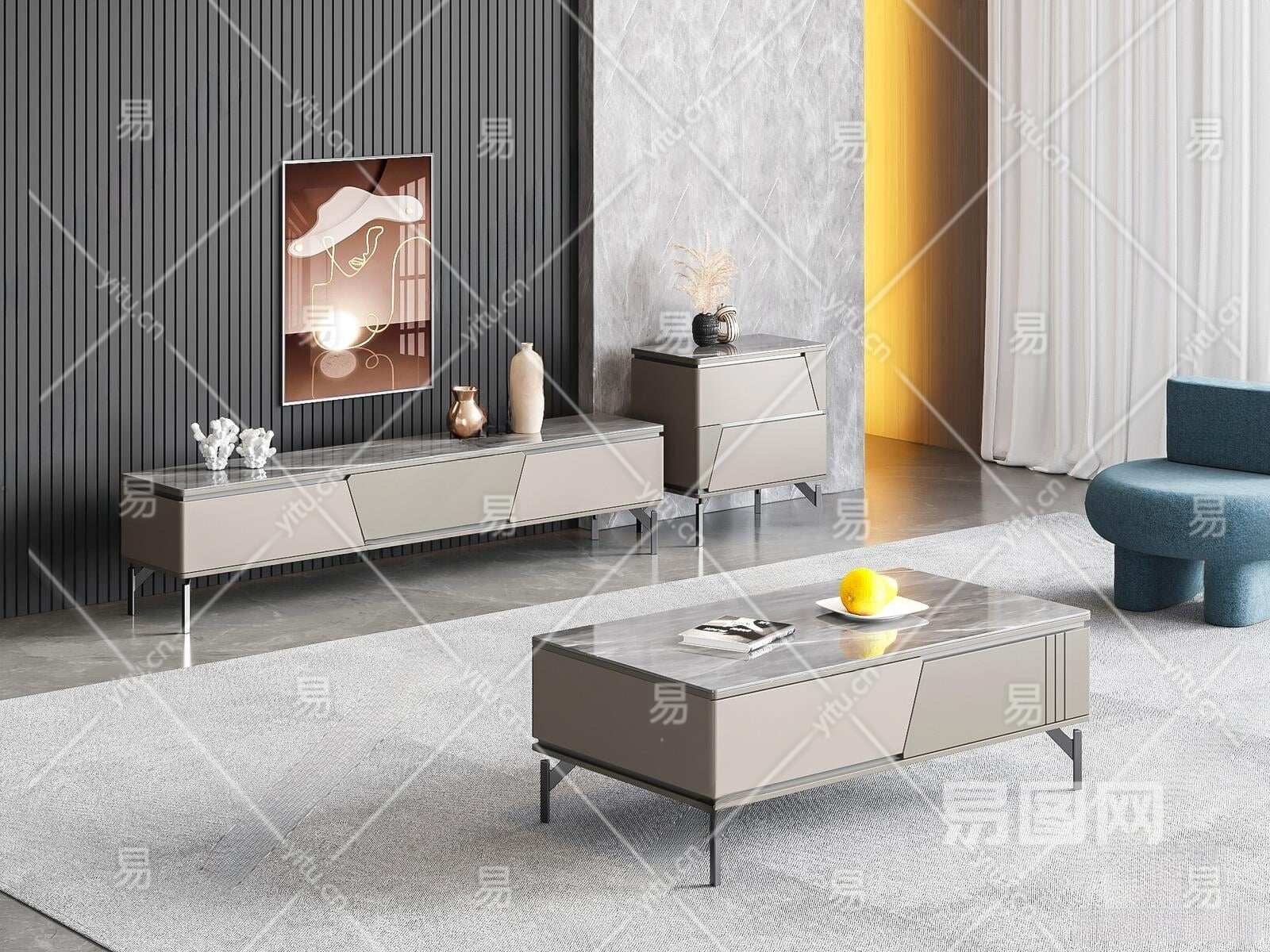 现代茶几3D模型下载