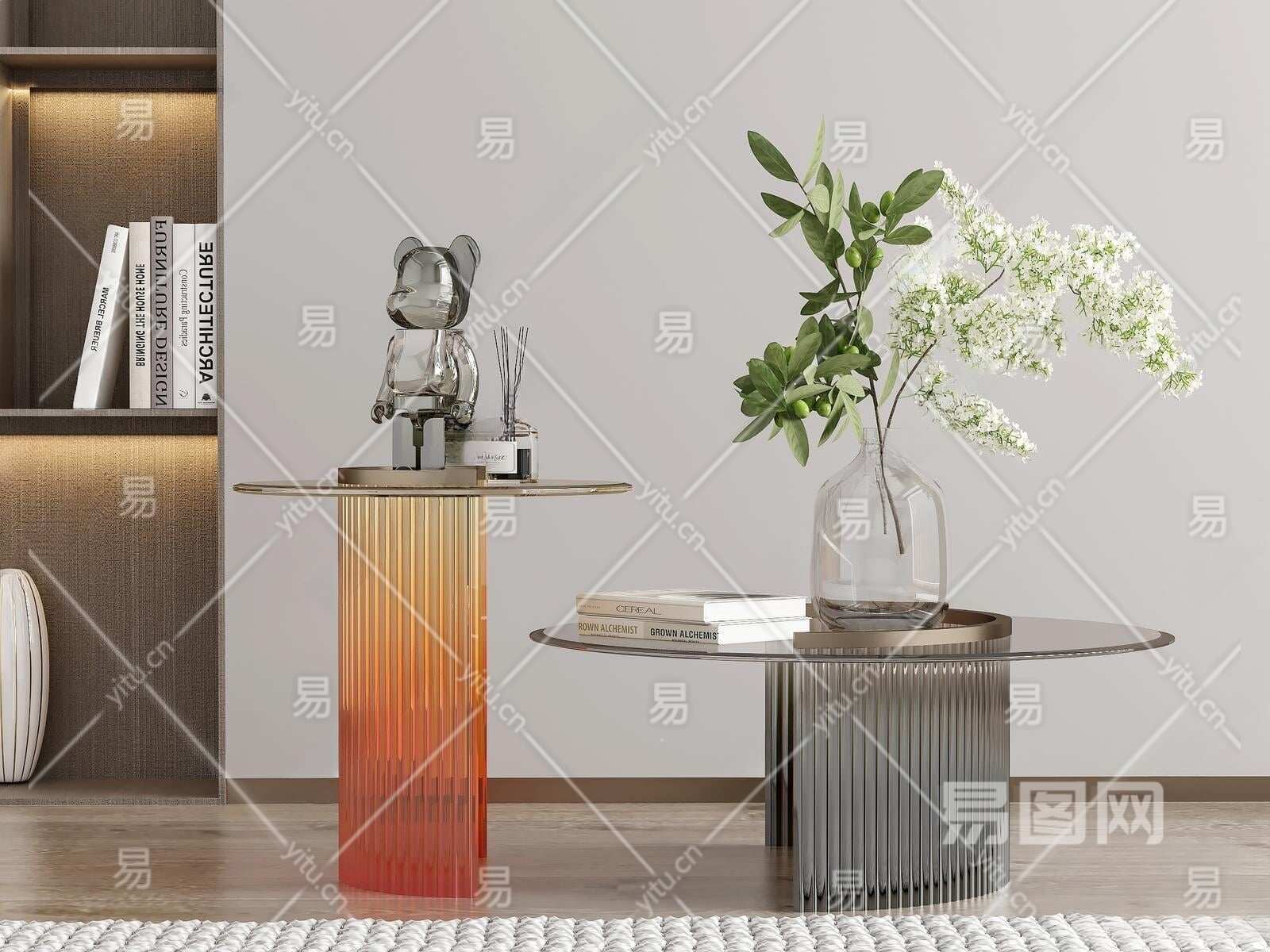 现代亚克力茶几组合3D模型下载