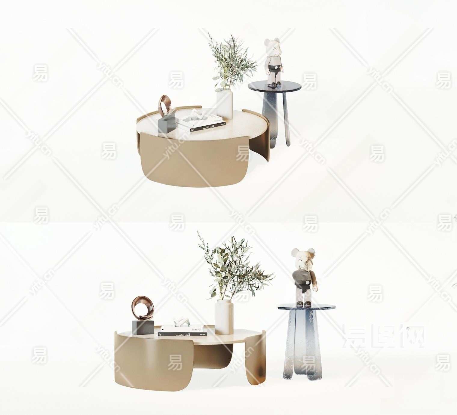 现代金属茶几3D模型下载