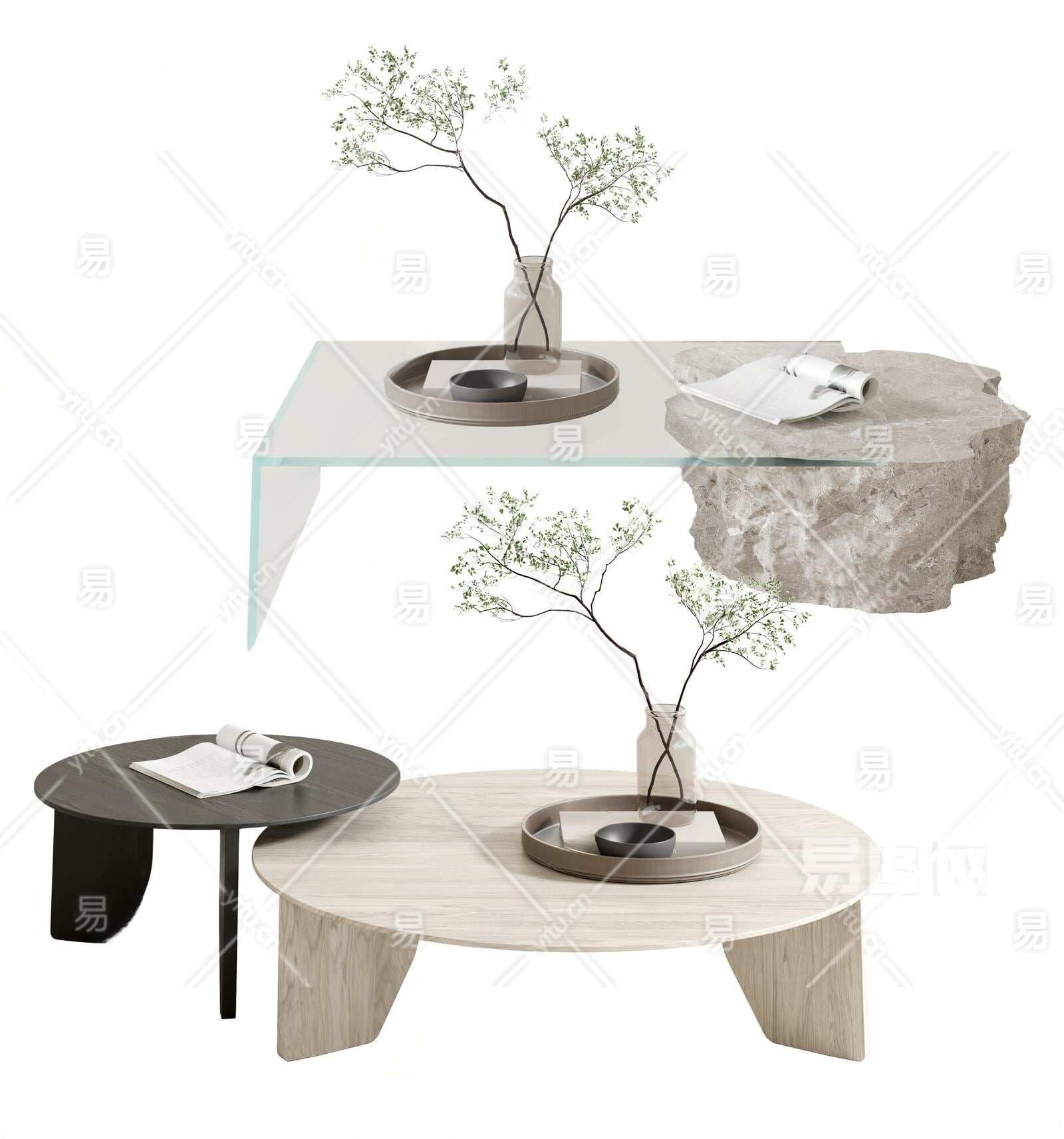 现代茶几3D模型下载
