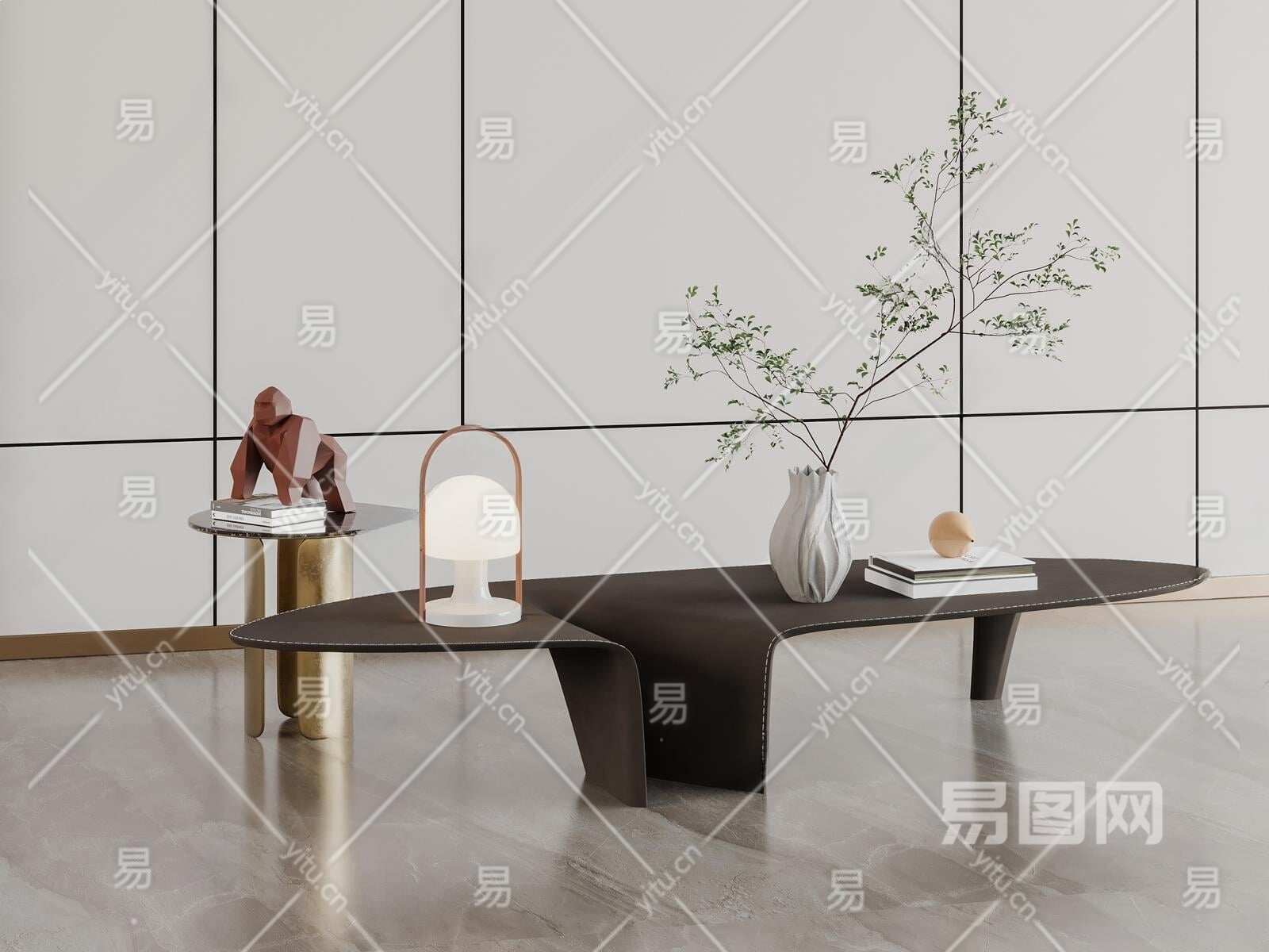 现代茶几组合3D模型下载
