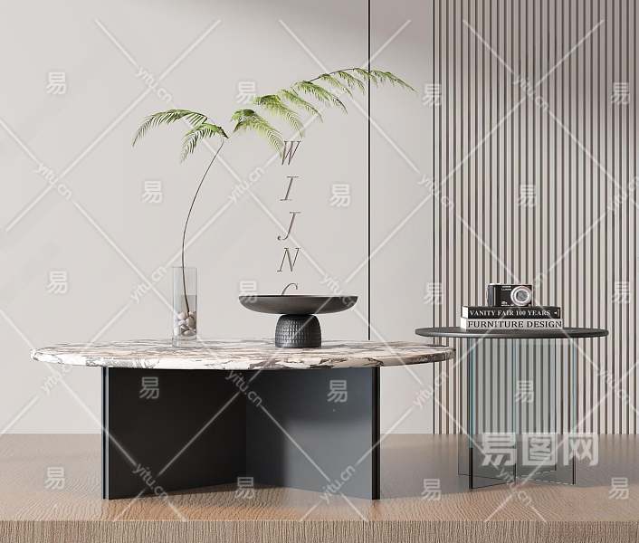 现代茶几组合3D模型下载