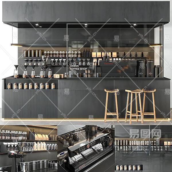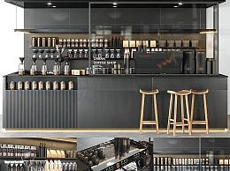 现代咖啡吧台 吧椅 咖啡机