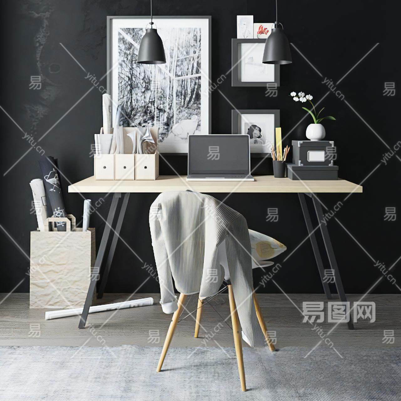 当前的位置:首页 > 3D模型 > 桌椅组合 > 办公桌椅组合 > 北欧电脑书桌椅 装饰组合