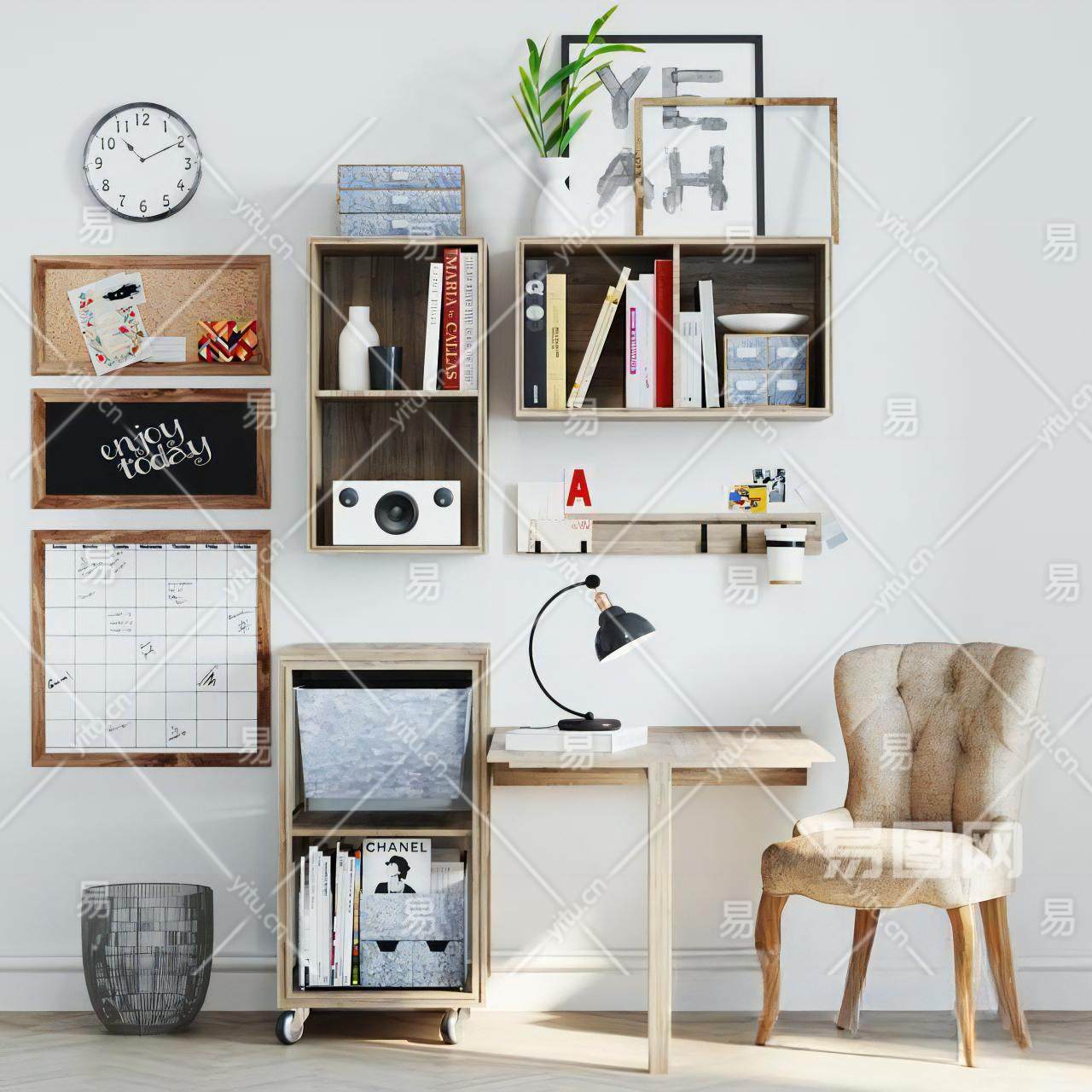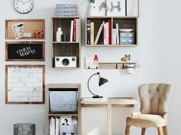 美式书桌椅组合 篓子 墙饰 书架
