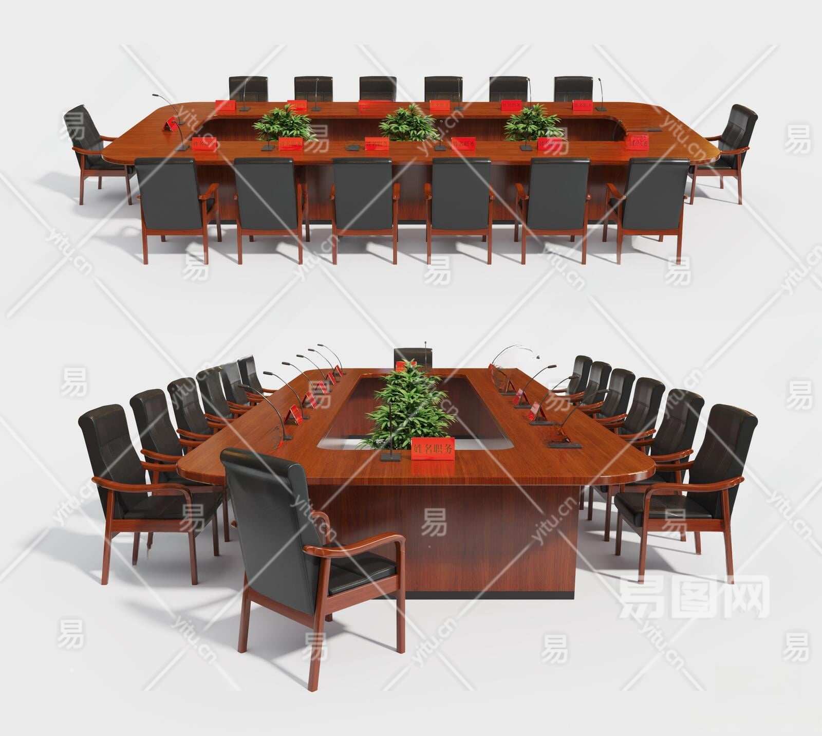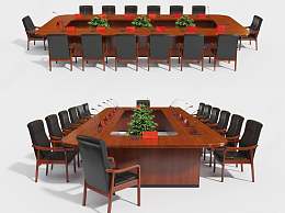 现代会议桌椅组合3D模型下载