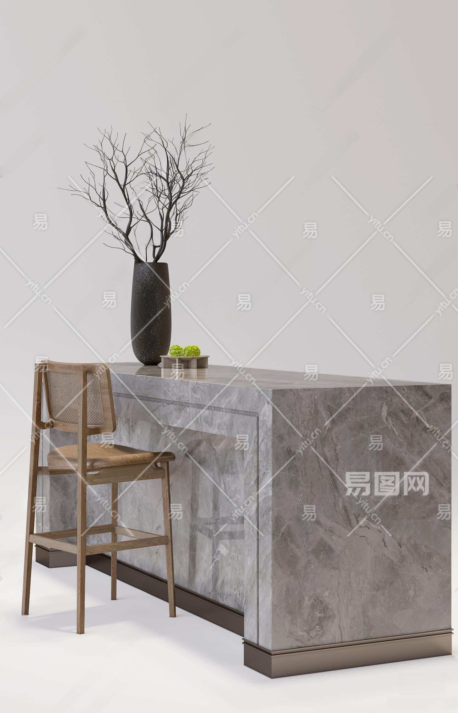 现代吧台吧椅组合3D模型下载