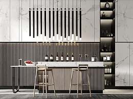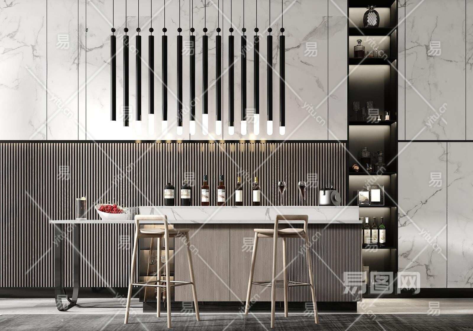 现代吧台吧椅组合3D模型下载