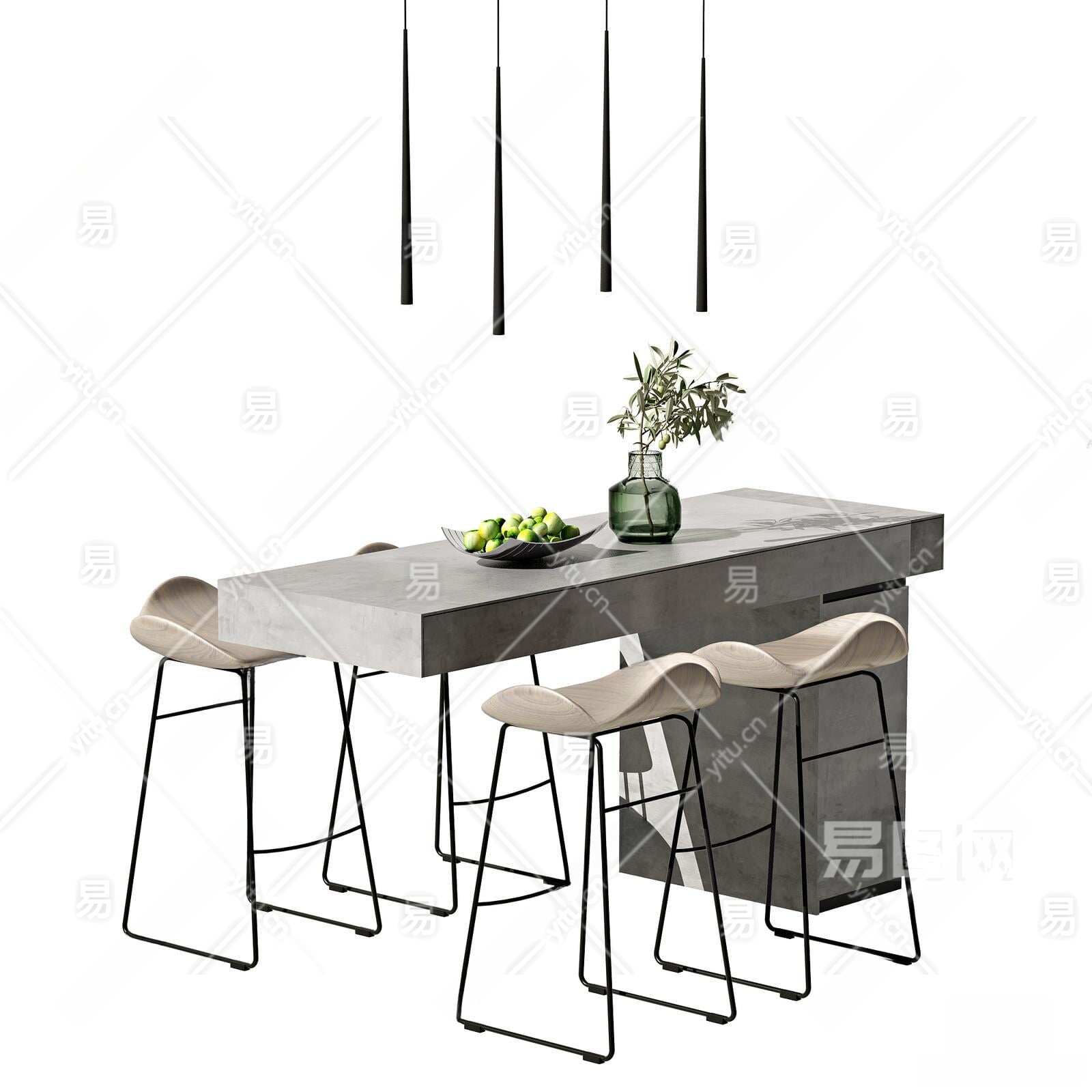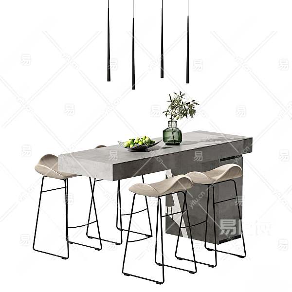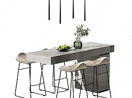 现代吧台吧椅组合3D模型下载
