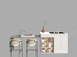 现代吧台吧椅组合3D模型下载