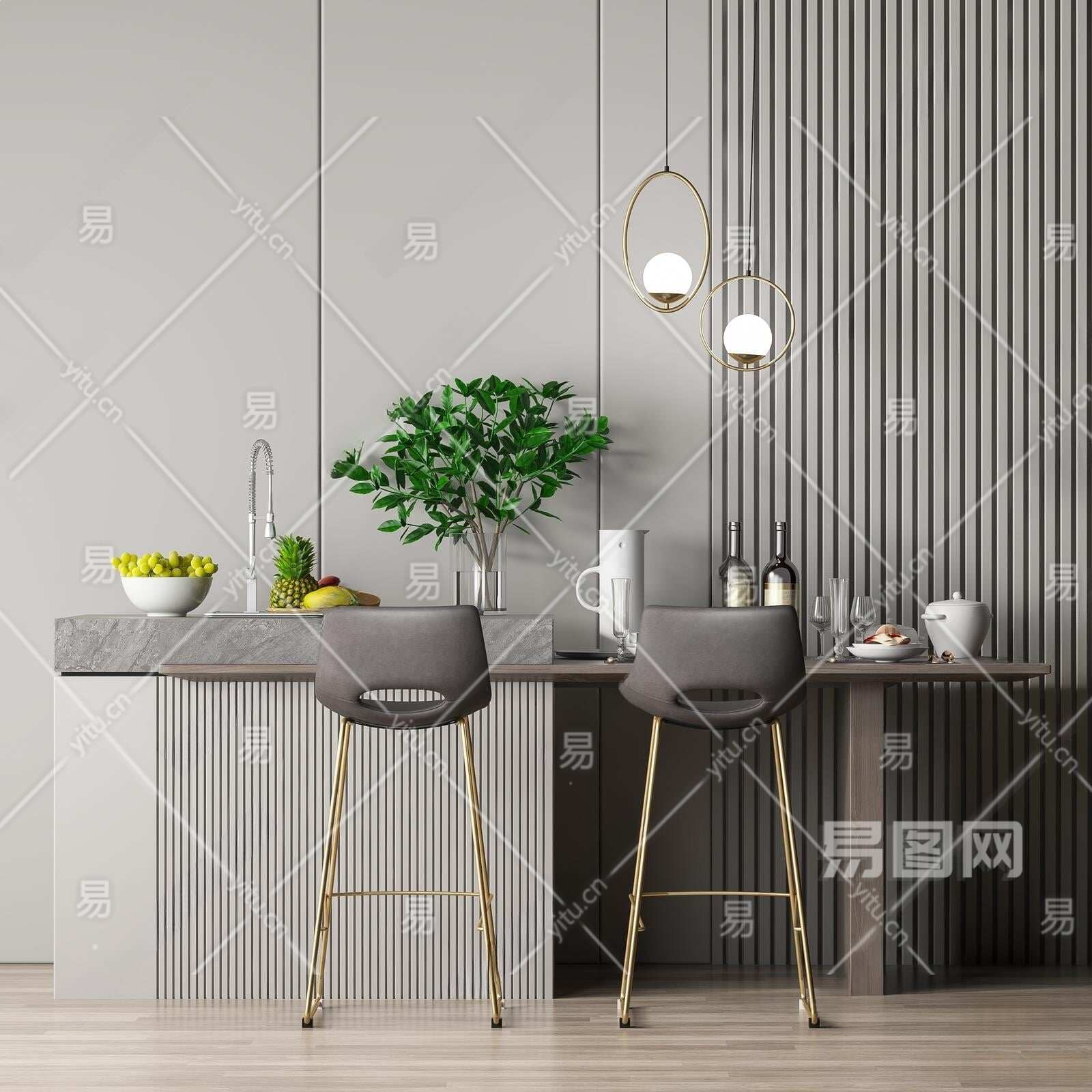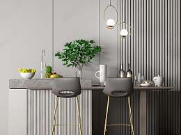 现代吧椅吧台组合3D模型下载