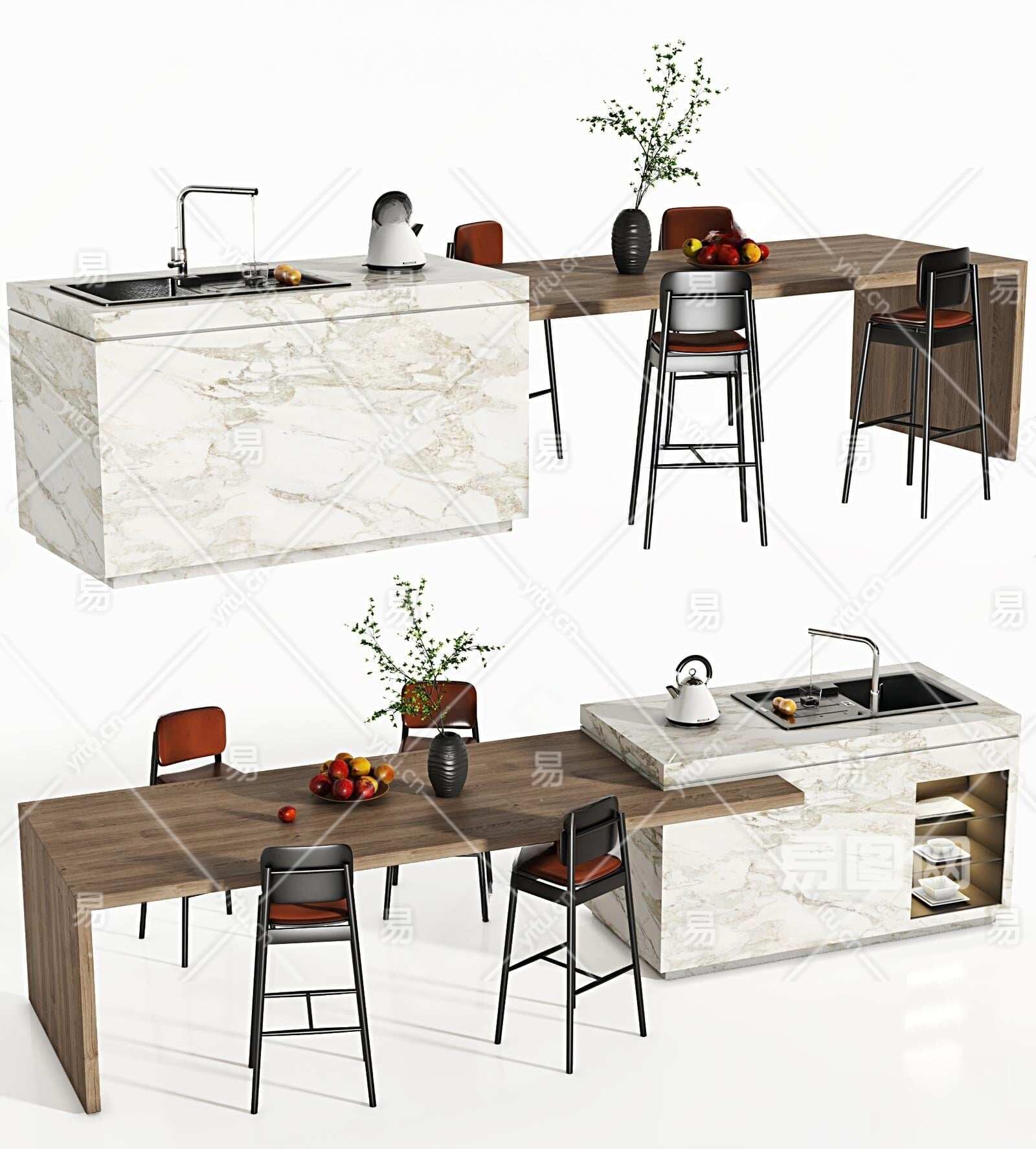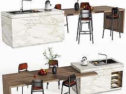 现代吧台吧椅组合3D模型下载