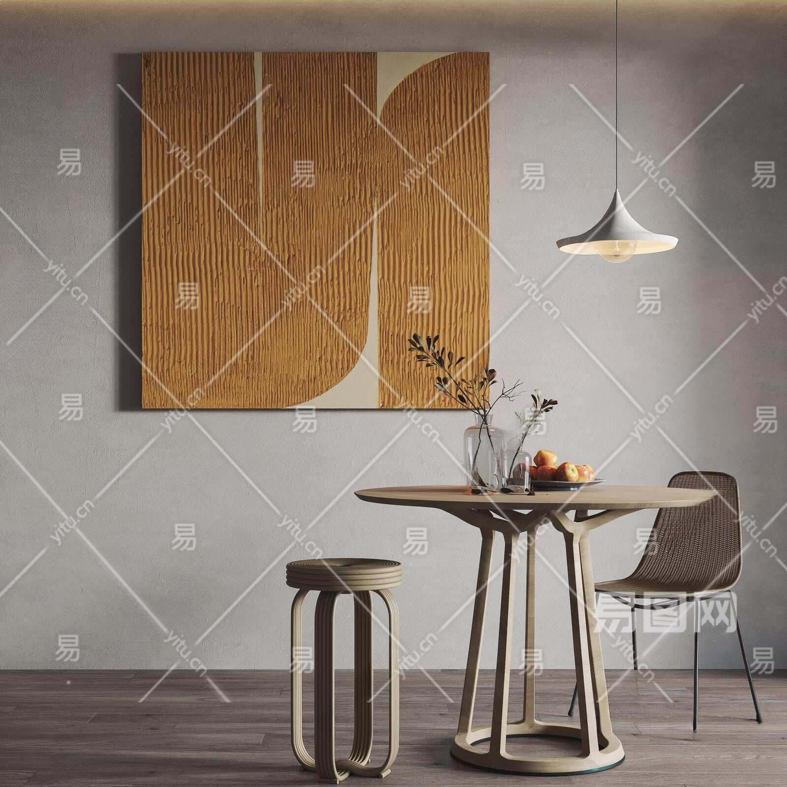 侘寂餐桌椅组合3D模型下载