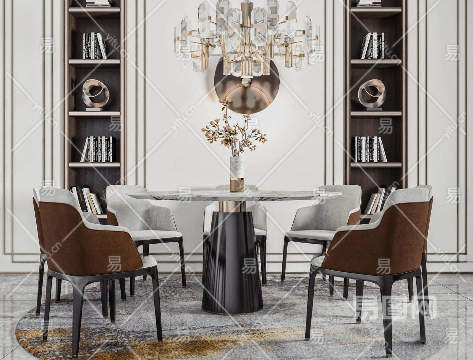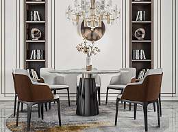 现代圆形餐桌椅3D模型下载