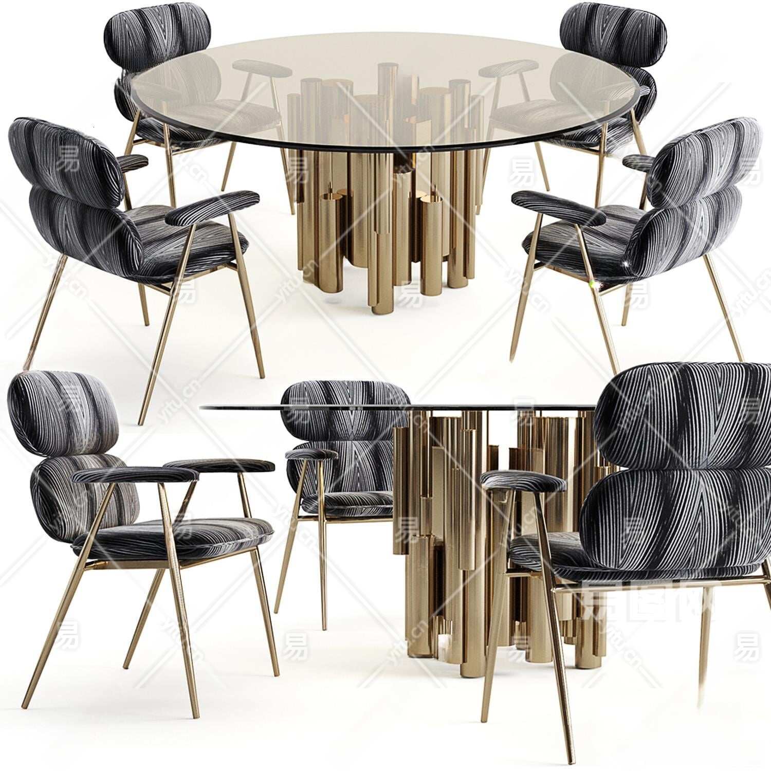 意大利ROBERTOCAVALLI现代餐桌椅3D模型下载