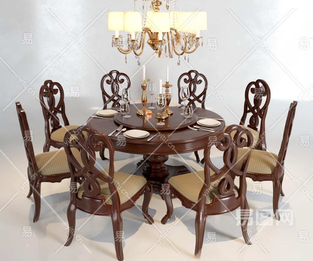 美式餐桌椅组合3D模型下载