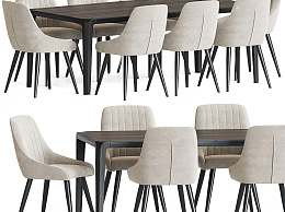 现代餐桌椅组合3D模型下载