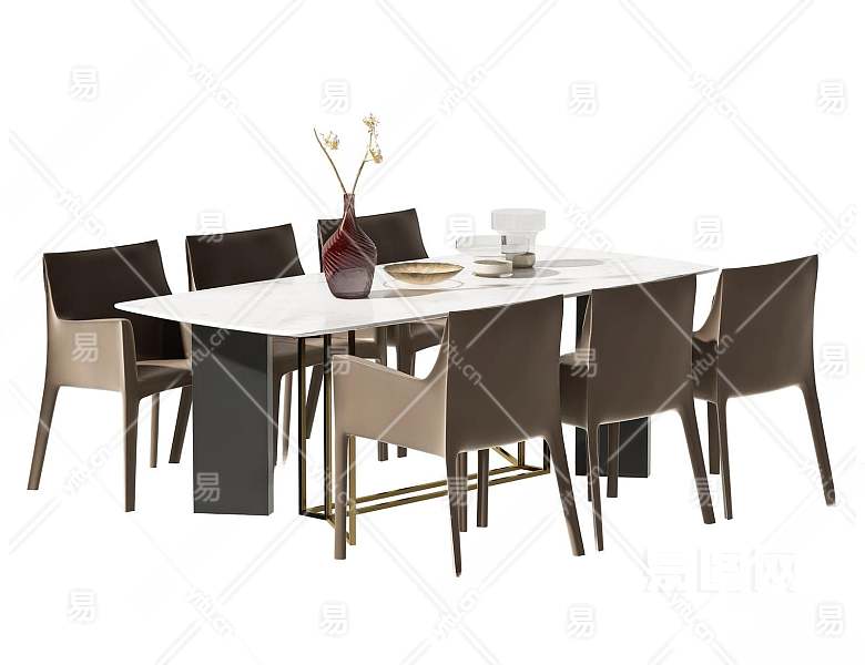 现代餐桌椅组合3D模型下载