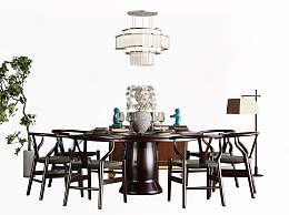新中式餐桌椅组合3D模型下载