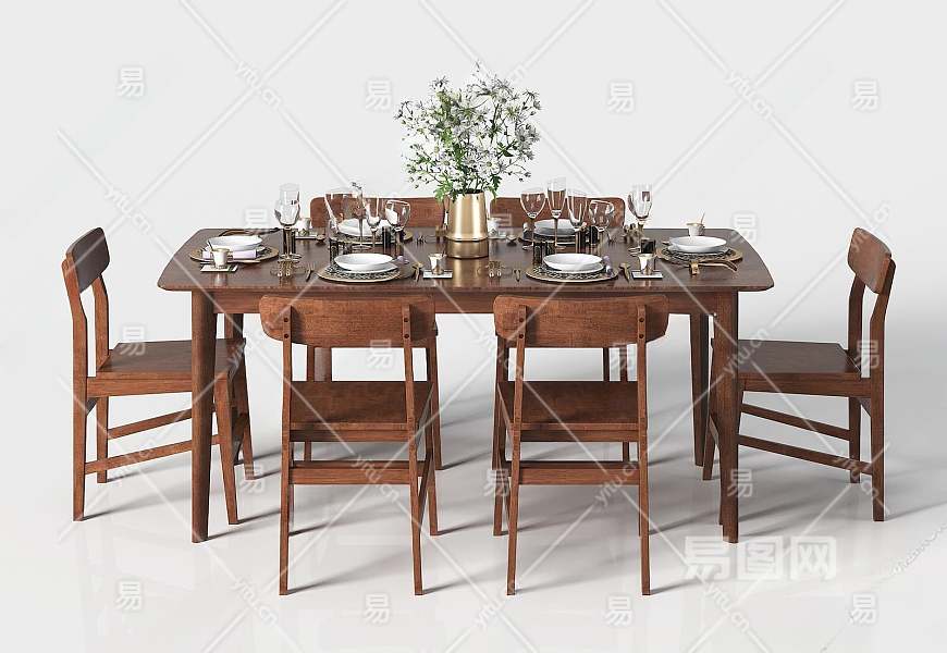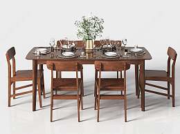 美式餐桌椅组合3D模型下载