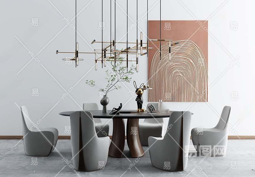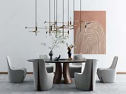 现代餐桌椅组合3D模型下载