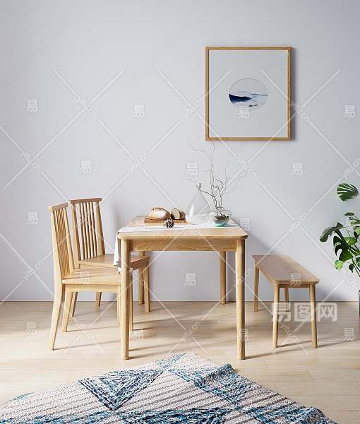 日式餐桌椅组合3D模型下载