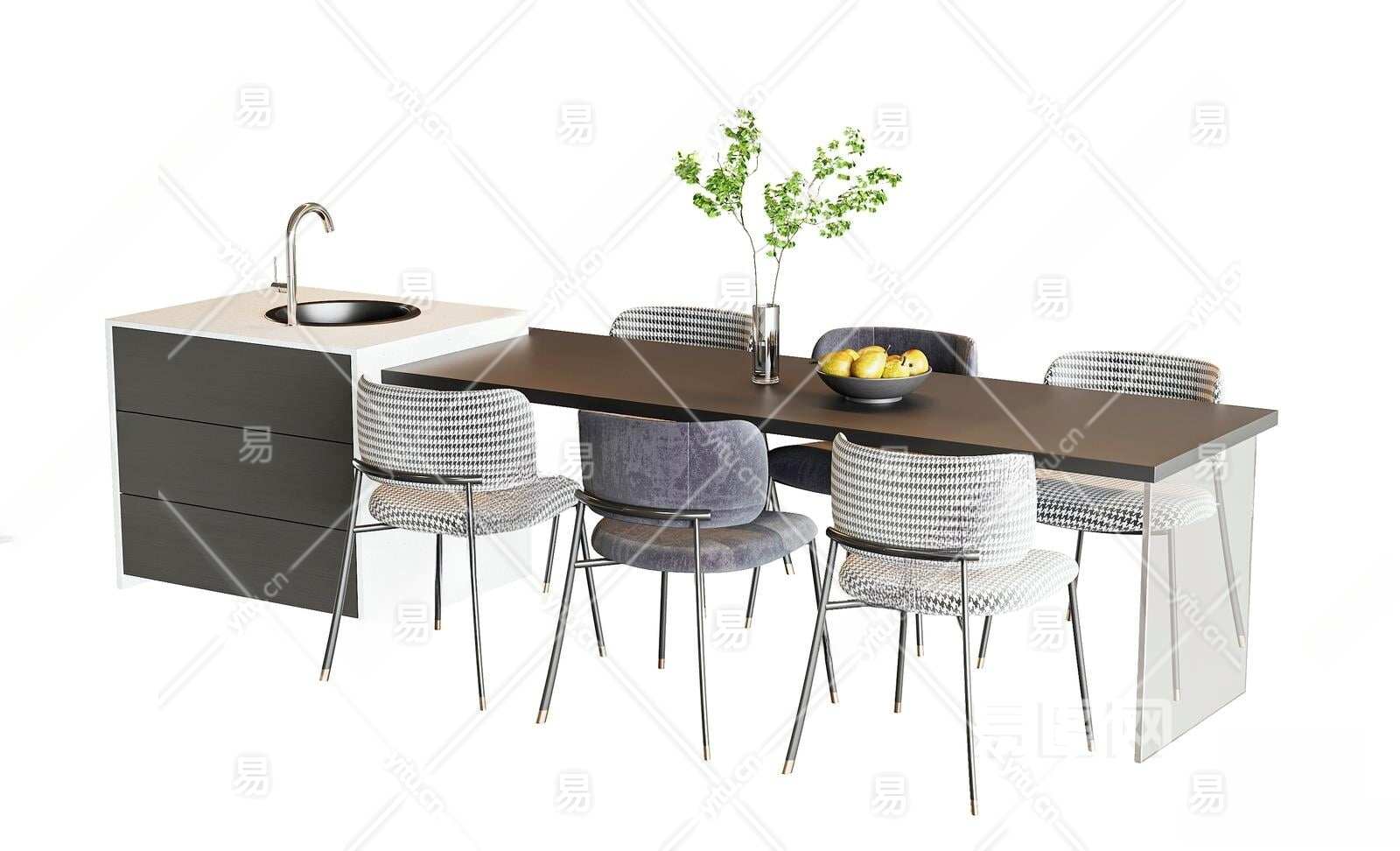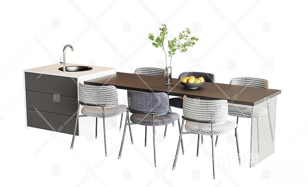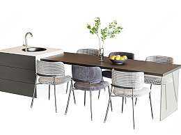 现代餐桌椅组合3D模型下载