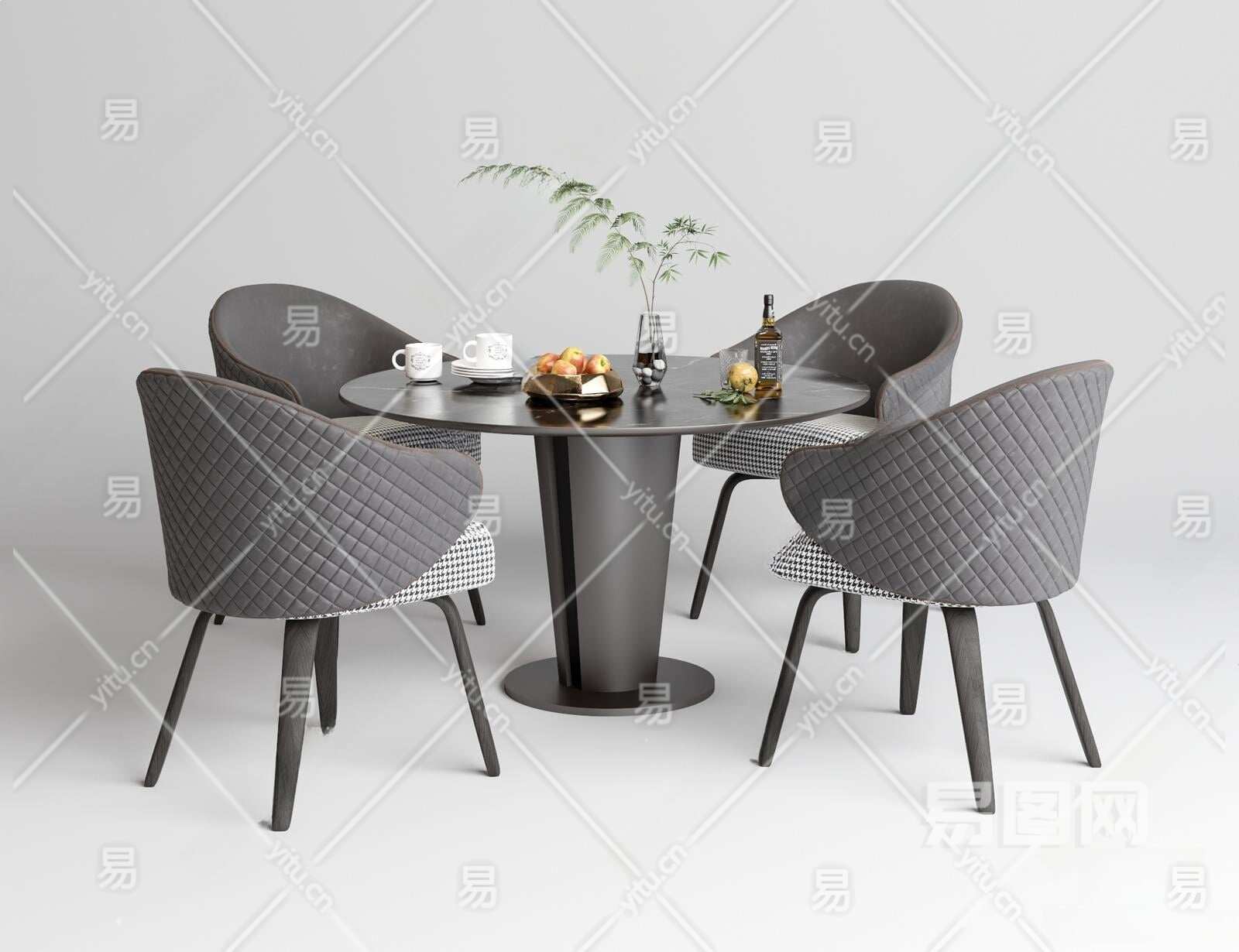 现代餐桌椅组合3D模型下载