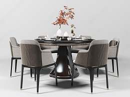 新中式餐桌椅组合3D模型下载