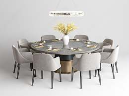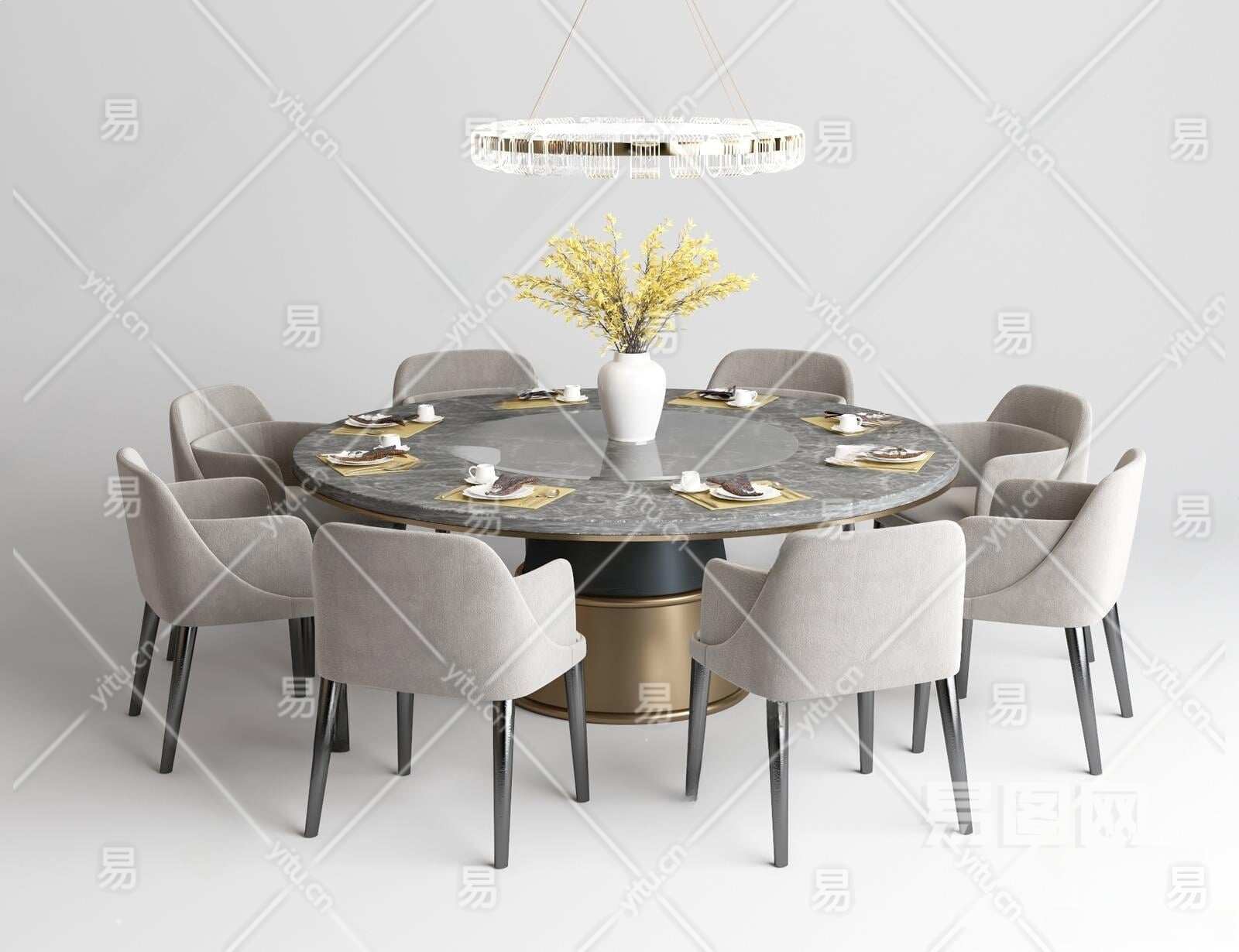 现代圆形餐桌椅3D模型下载