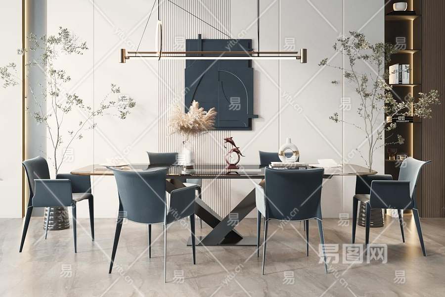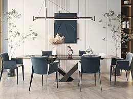 现代餐桌椅组合3D模型下载